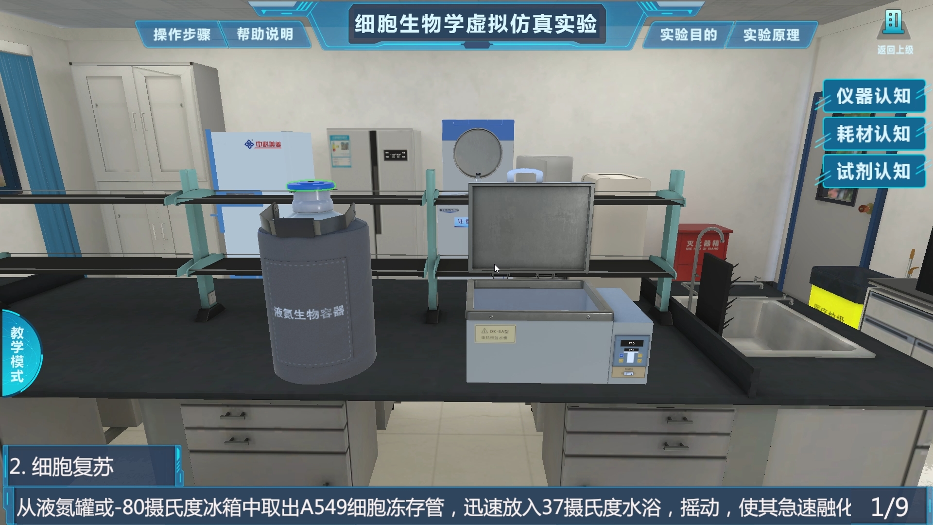 通过构建一个电脑虚拟的操作平台,让学生模拟进行细胞培养过程中的实验准备、细胞复苏、传代、冻存等操作,从而学习和掌握细胞培养的相关知识和技能。